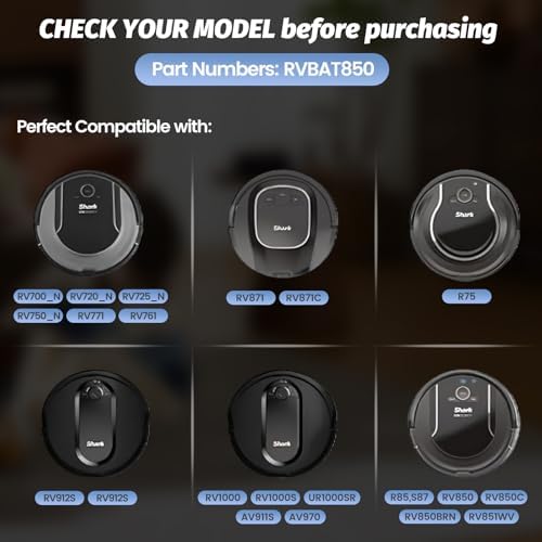 - Wide Compatibility — Designed for 2-Prong Shark Ion Models.Fully compatible with Shark Ion robot vacuums using the RVBAT850 2-prong connector, including RV700_N, RV720_N, RV725_N, RV750_N, R75, R85, S87, RV761, RV771, RV850, RV850C, RV850BRN, RV871, RV912S, RV1000, RV1000S, UR1000SR, RV1001, RV1001AE, RV1100VL, AV751, AV752, AV753, AV911S, AV970 and more.❗ NOT compatible with 3-prong models such as RV700, RV720, RV750, RV755.