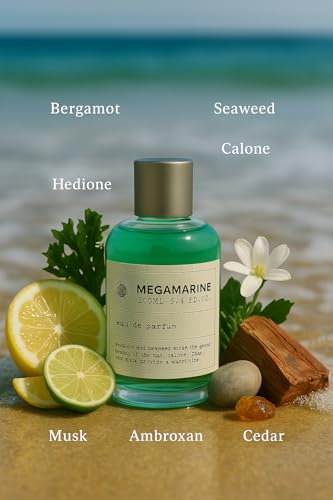Megamarine Eau de Parfum, Natural Spray, 3.4 fl oz, Marine Fresh Fragrance with Cedar and Musk