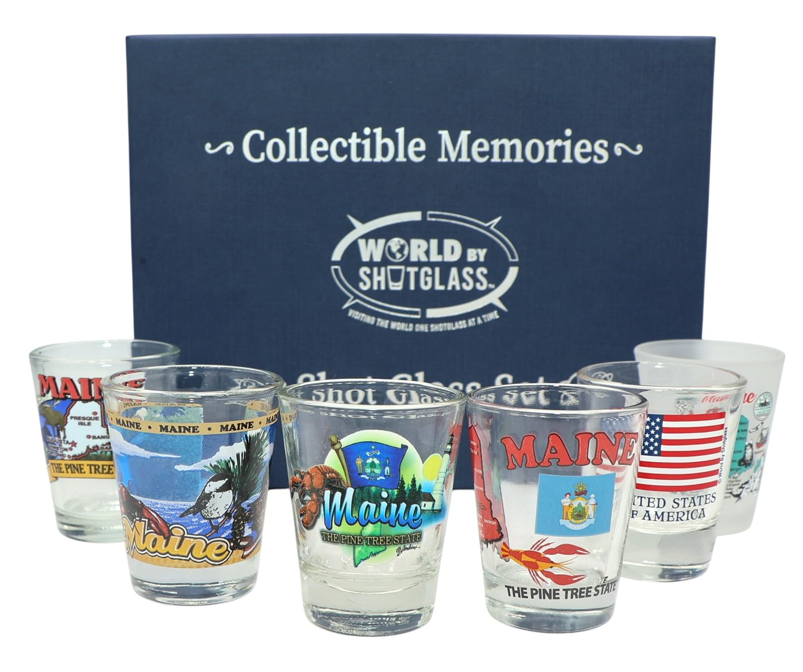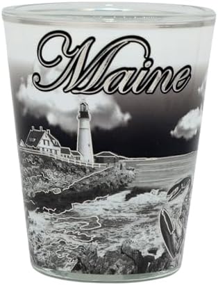 Here's a very rare and hard to find souvenir collectible shot glass from Maine. It's a 5x6cm style shot glass measuring 2.25" tall and 1.8" in diameter.