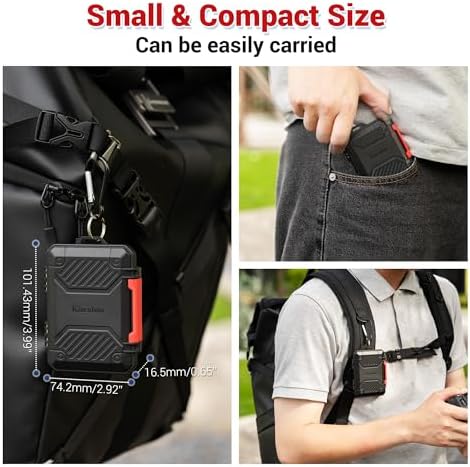 - Slim Size: The thickness of this memory card case is only 0.65"(1.65cm). The slim size makes it easy to store in pockets, backpacks, or boxes, ready for travel at any time; And the package includes a carabiner that can help you hang the card holder on your backpack.
