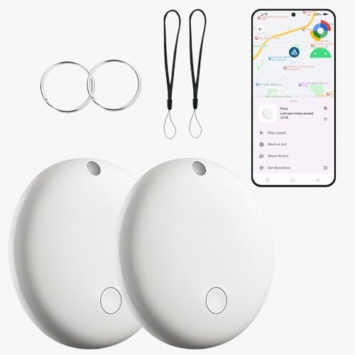 Bluetooth Tracker for Android (2Pack, White), Works with Google Find My Device App, IP67 Waterproof, Replaceable Battery, Tracker Tag for Keys, Backpack, Suitcases, Travel and Commute