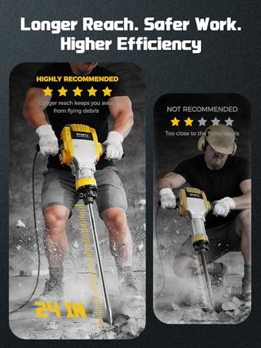 - Heavy-Duty Applications: Suitable for concrete breaking, brick and masonry removal, tile and flooring demolition, and other heavy renovation tasks. Designed for professional contractors, construction crews, and demanding DIY users who require reliable tools for tough jobs.