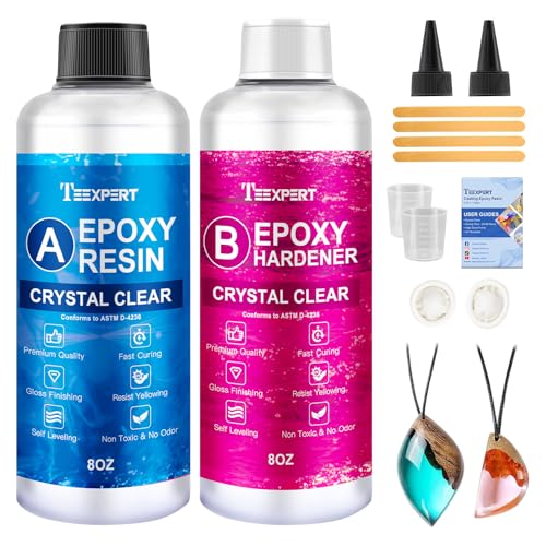 - PREMIUM QUALITY & PRO-GRADE: Teexpert epoxy resin delivers a crystal clear, high-gloss finish that resists yellowing, stays bubble-free and cures rock-hard. Perfect for diverse crafts like jewelry, coasters, and decorations. Our refined formula includes antioxidants and defoamers for enhanced clarity and durability. Certified safe with SDS and REACH for a worry-free, professional crafting experience