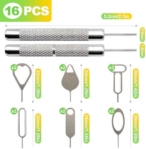 16 Pack SIM Card Ejector Tool Kit, Universal SIM Tray Removal Key Fits Most Smartphones Tablets and Electronic Devices with SIM Card Slots