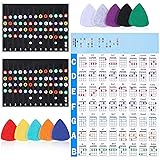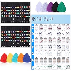 - Materials: Paper + FeltWeight: 30gDimensions: Chord chart: 20.9 x 29.7cm/8.23 x 11.7 inches, fretboard stickers: 10 x 7.2cm/3.94 x 2.83 inches, felt picks: 3 x 2.5cm/1.18 x 0.98 inchesPackage Included: 1 chord chart + 2 scale stickers + 10 felt picks
