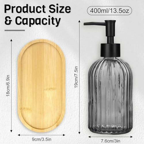 - 【Safe and strong material】The tray is made of natural bamboo and wood and can hold 2 pcs soap liquid bottles.The bottle is made of high quality glass, safe, strong and durable, the bottle body is formed in one body, there is no leakage, the pump head uses no BPA pipe, no plastic odor, to avoid the rust of the pump head, durable.