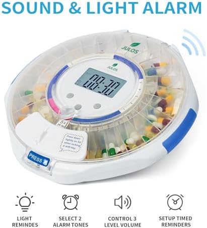 JULOS Bluetooth Automatic Pill Dispenser with Sound/Light/App Alerts for Seniors, Locked 28-Day Medication Organizer, up to 9 Alarms/Day, Pill Dispenser for Vitamins & Supplements & More, Clear Lid