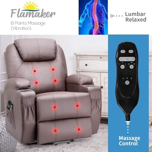 Flamaker Power Lift Recliner Chair with Vibration Massage for Elderly Ergonomic Lounge Chair Classic Single Sofa with Cup Holders Side Pockets for Living Room (Brown)