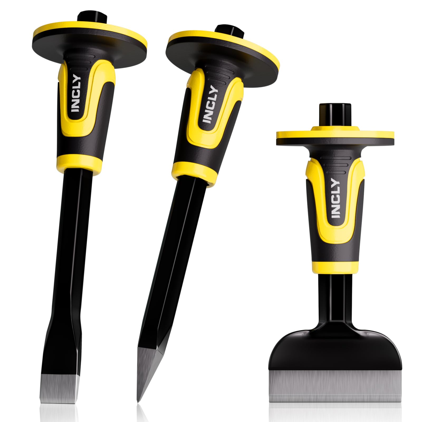 - 【Protective Hand Guard Design】Each concrete chisel is equipped with a thick, wider hand guard to absorb shock, prevent slippage, and protect your hands from overstrikes—offering improved comfort and control during use.