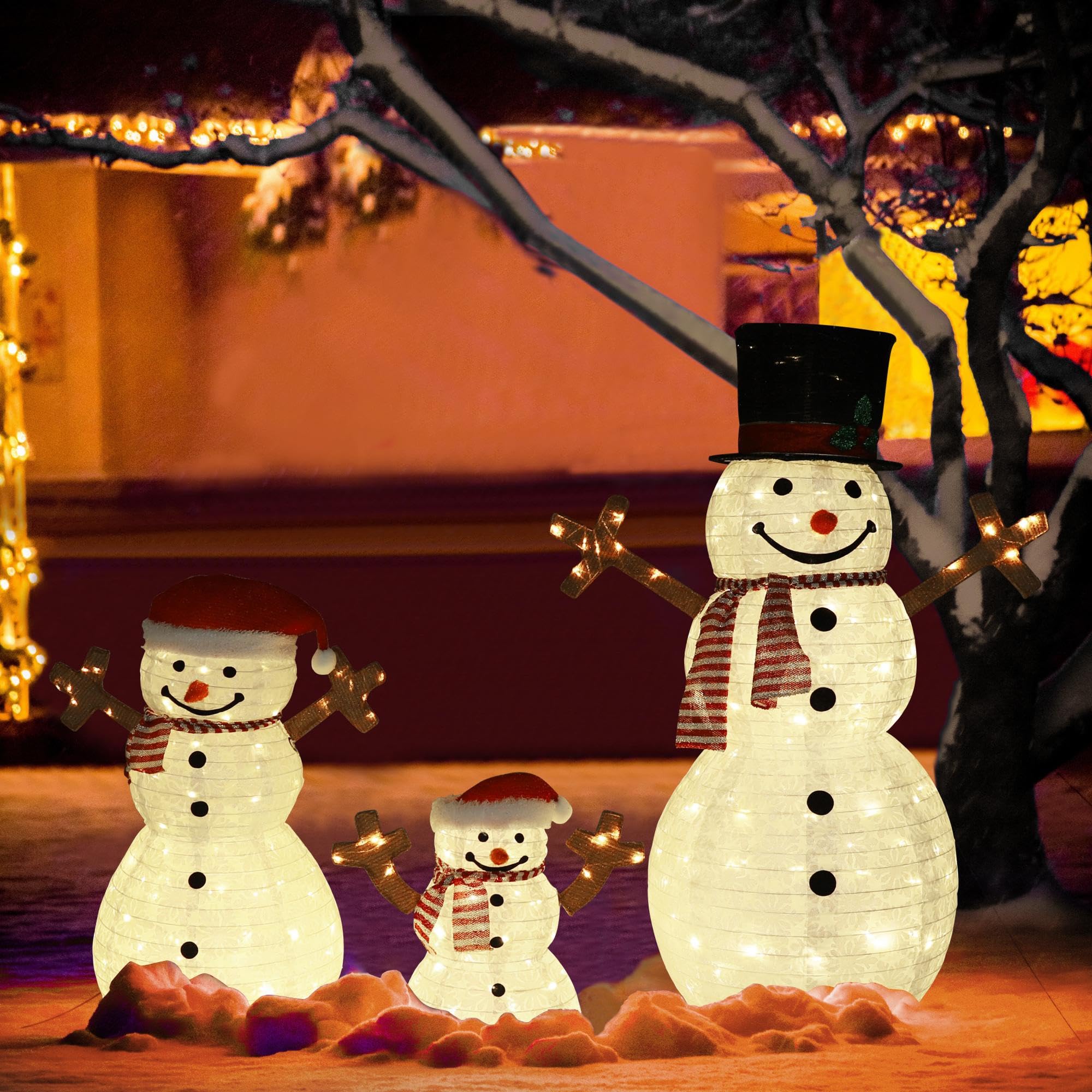 - DURABLE AND WEATHERPROOF - Crafted from high-quality waterproof materials, a powder-coated steel frame, and tinsel fabric, this christmas yard decoration is ideal for outdoor use. Whether it's snow or shine, your display will remain intact and festive. Suitable for both indoor and outdoor setups—such as gardens, lawns, balconies, and more—it creates the perfect holiday spirit.