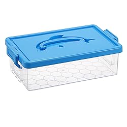 BTSKY 1-Pack Clear Plastic Storage Box with Lid, Stackable Organizer Featuring Easy-Lift Dolphin Design, Multi-Use Portable Container for Home, Craft, Office, Space-Saving with Secure-Clasp, Blue
