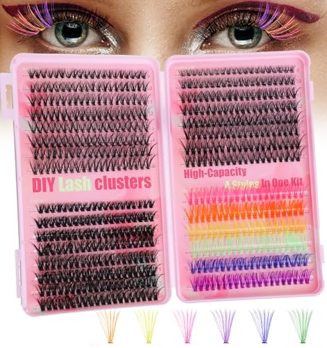600 Pcs Lash Clusters Colored, Colored Lash Clusters Fluffy with D-Curl Volume, DIY Extensions for Home Salon & Party