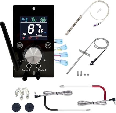 Universal Upgraded WiFi PID Controller Kit Replacement for Pit Boss, Traeger, Z Grills, Asmoke and More | Complete Set with Smart APP Control Board, Hot Rod Igniter, RTD Probe & 2 Meat Probes