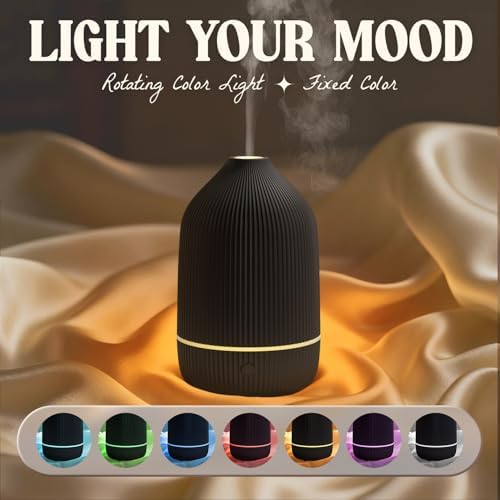 Essential Oil Diffuser, 100ml Aromatherapy Diffuser, Mini Ultrasonic Diffuser for Essential Oil, Home, Office, Cool Mist Humidifier with 7 Led Light, Auto Shut-Off, Black