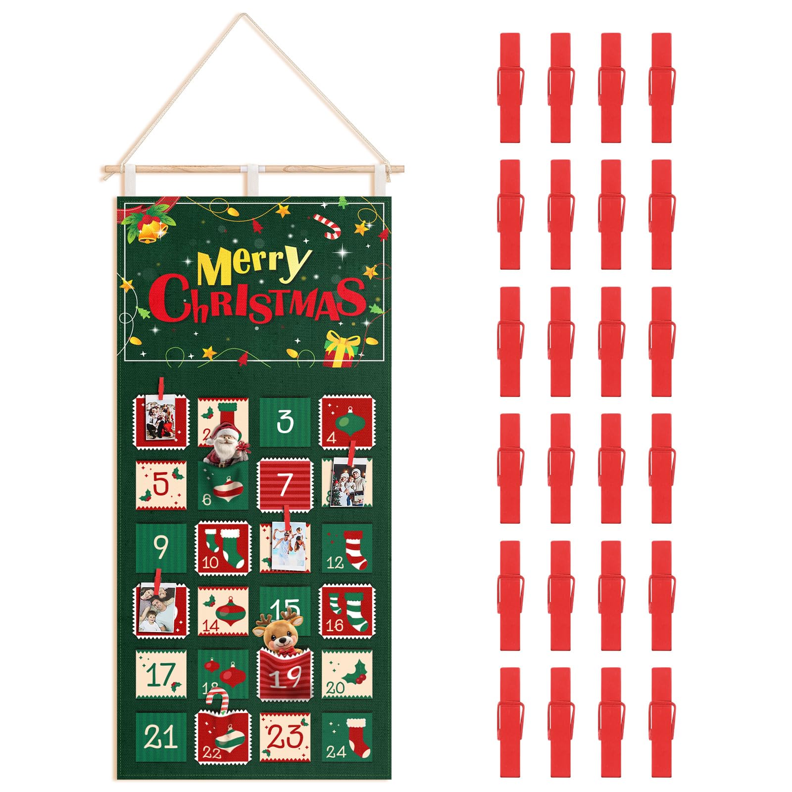 - Christmas Countdown Calendar: you will receive 1 Christmas advent calendar with 24 pockets and 24 wooden clips; The fabric calendar is printed with a variety of Christmas-themed patterns; This 2025 hanging advent calendar lets you open one pocket each day, starting December 1st, to enjoy a treat throughout Advent