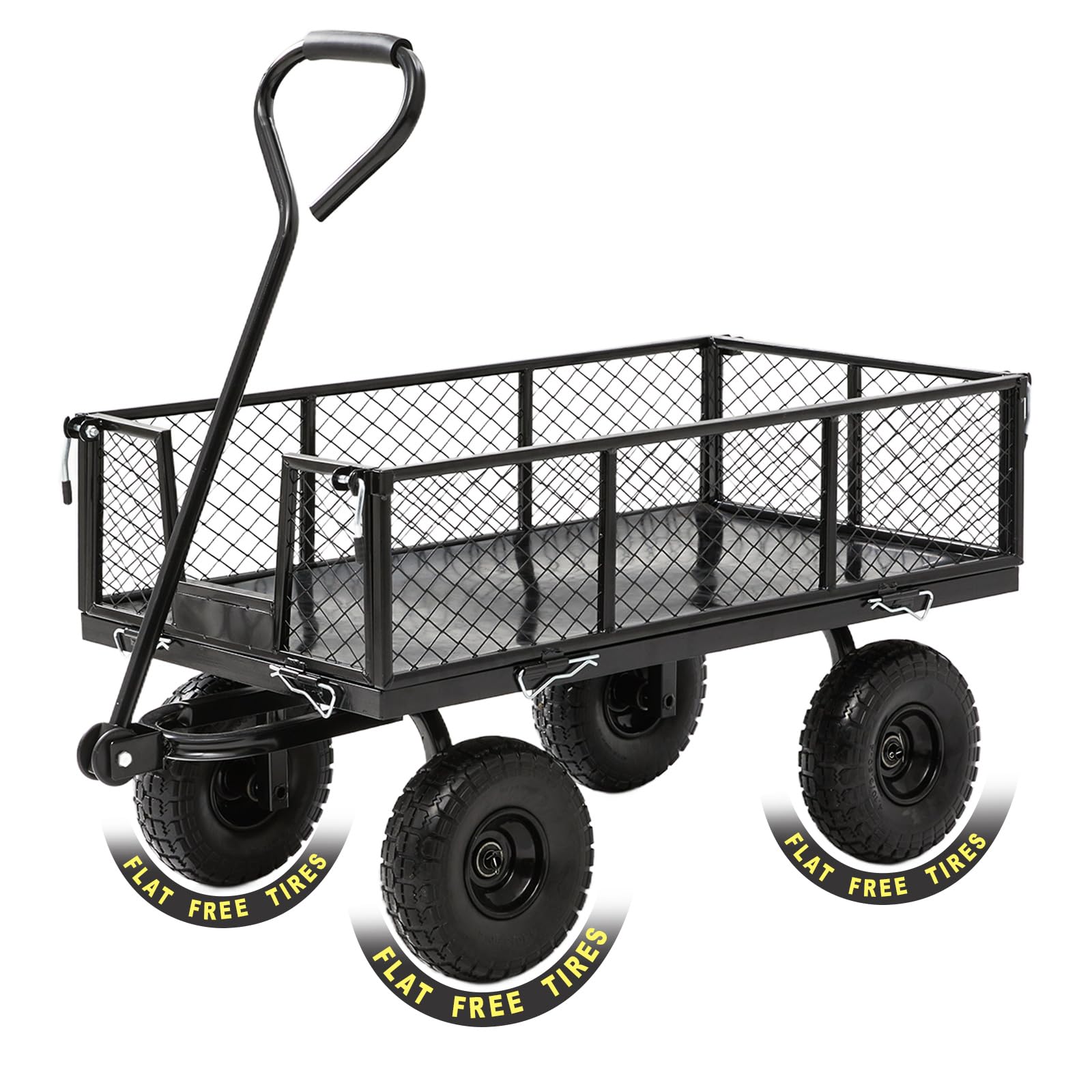 • Convertible Flatbed Versatility: Four removable side panels let you easily switch between a standard yard cart and a flatbed for oversized items. Keep side panels on to prevent stuff from falling, or remove them for carrying heavy loads with a low center of balance