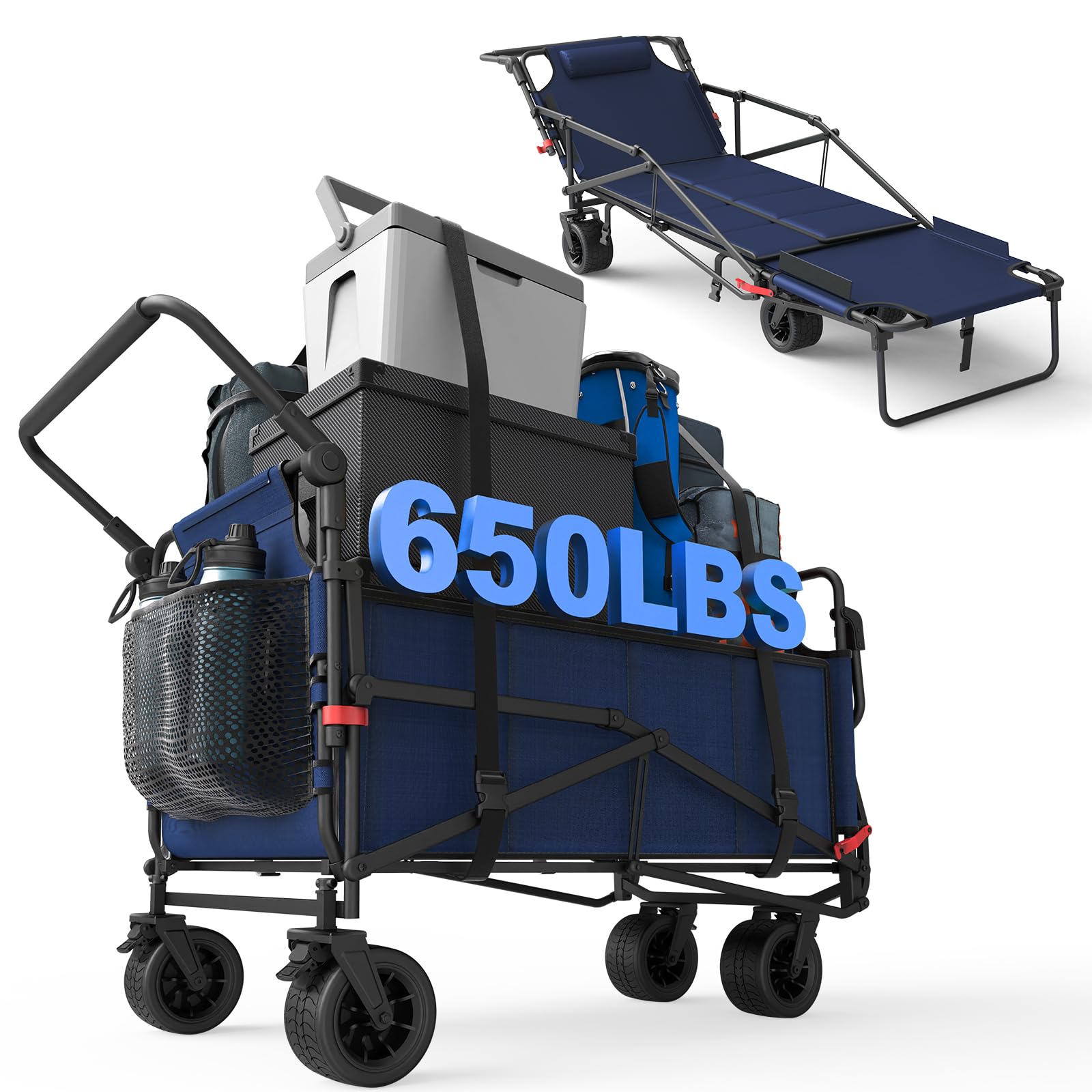 • All-Terrain 10 in Pneumatic Tires: Outfitted with four 10 in pneumatic tires and ball bearings to reduce resistance, this utility wagon glides smoothly over cobblestones, grass, snow, or sand, delivering reliable performance in all seasons
