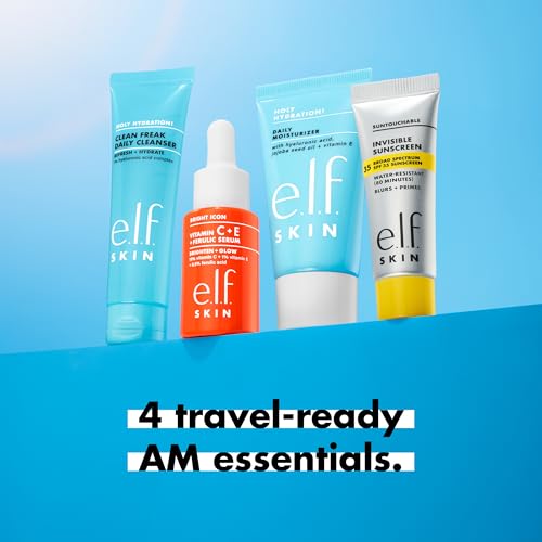 e.l.f. SKIN Wake the e.l.f. Up Skincare Kit, Travel-Size Hydrating Face Cleanser, Sunscreen, Moisturizer & Brightening Serum, Vegan & Cruelty-Free