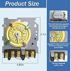 - T104M Mechanical Time Switch, Timers for Pool Pump, 208-277V 40A Time Switch, 24 Hour 12 ON/Off for Pool Pump, Heavy-duty Mechanical Time Switches,Time Switch Mechanism Only, 5 Years Warranty