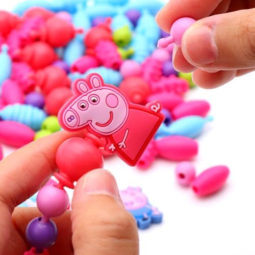 These Peppa Pig Pop Beads are a fun way to dress up your style. You can make a bracelet or necklace for yourself or for family or friends. The easy to snap apart beads allow you to design your creations over and over. Set includes: 2 character charms and 100 assorted pop beads