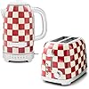 • ELEGANT KITCHEN ESSENTIALS: Our Cherry Check Electric Kettle and 2-Slice Toaster bundle includes kitchen appliances covered in color-dragged red-and-white checks. The vibrant checkered pattern combines with retro styling to create uniquely charming pieces.