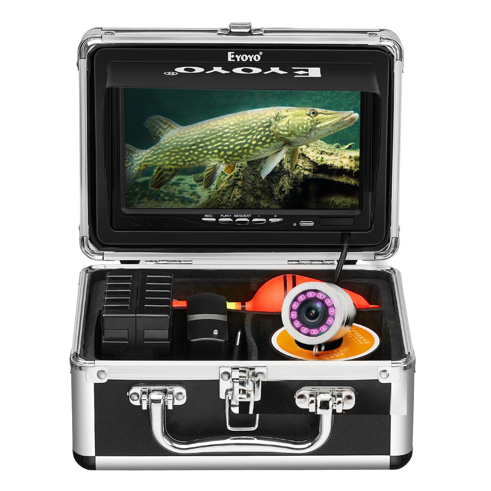 - Enhanced Visual Clarity for Unmatched Fishing Success: Elevate your fishing experience with the Eyoyo underwater fishing camera; its 7" IPS monitor delivers vibrant visuals with 1024x600 resolution, 16:9 aspect ratio, and a 178° viewing angle. Perfect for use as a portable fish finder, it helps you easily spot fish in bright conditions during ice fishing, lake fishing, or marine exploration