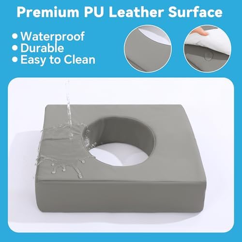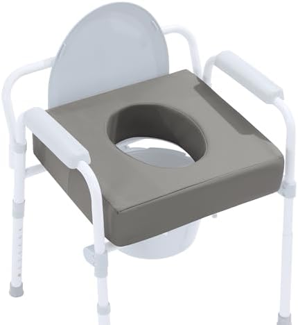 MABOZOO 4-Inch Bedside Commode Cushion, PU Leather Raised Toilet Seat Cushion for Elderly & Patient, Toilet Seat Padded with High-Density Foam (Gray, Universal Fit)