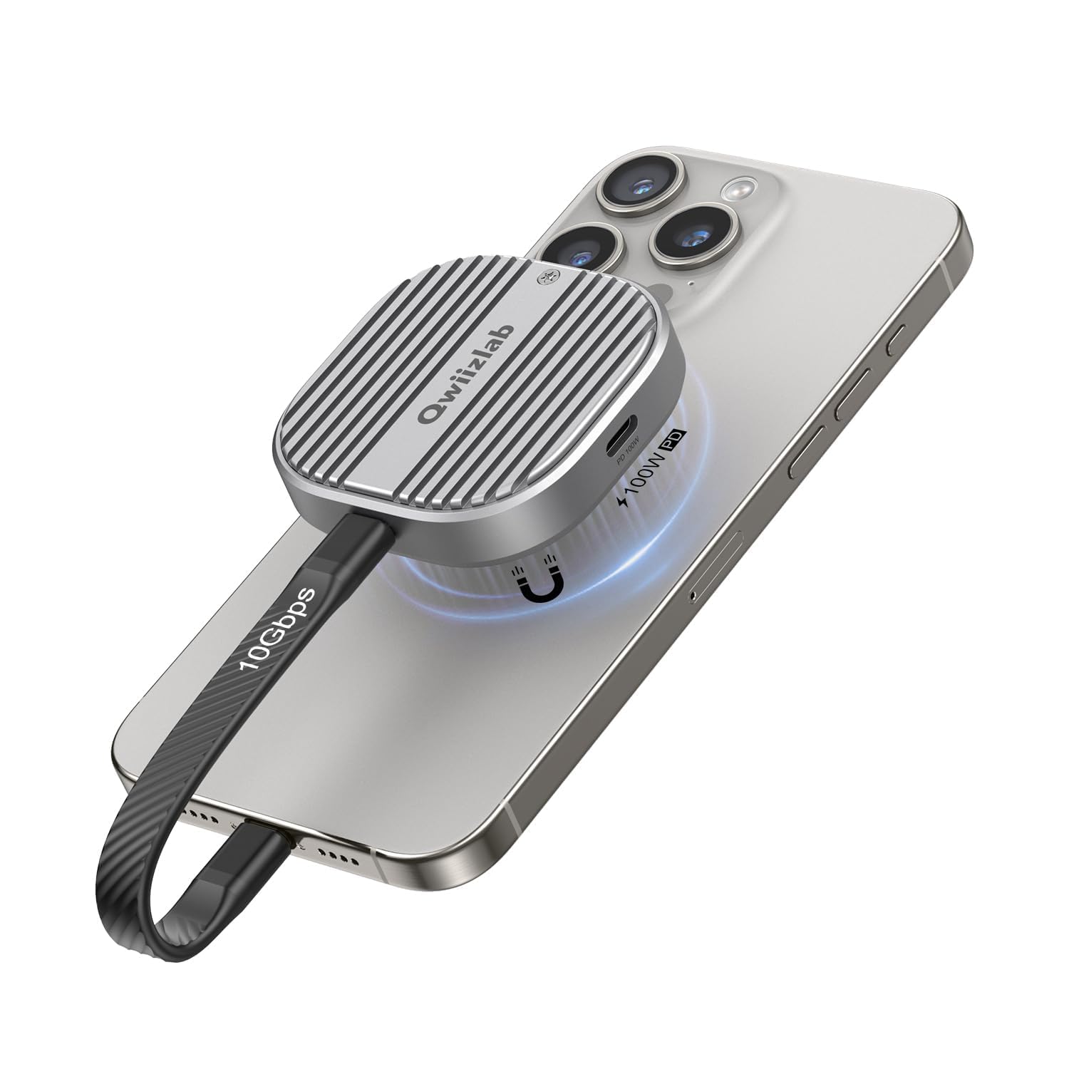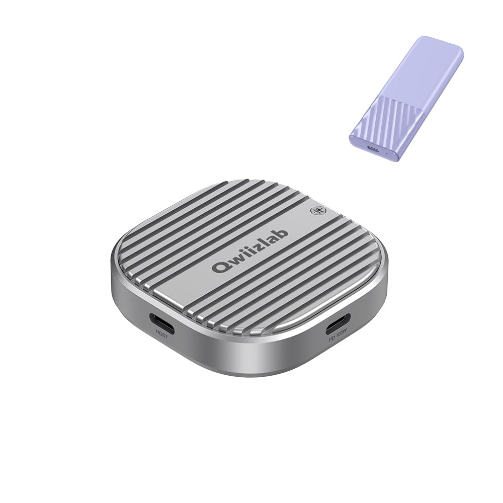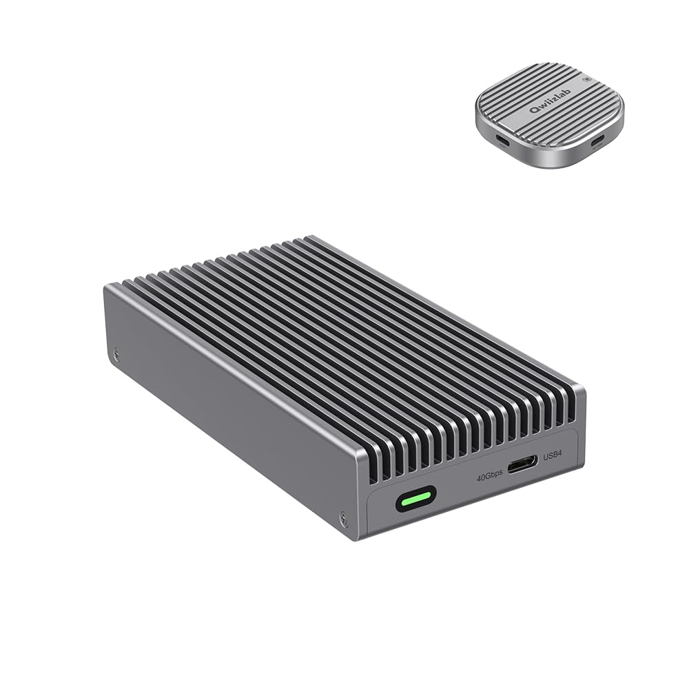 Qwiizlab Fanless 80Gbps NVMe Enclosure with Aluminum Chassis, Compatible with Thunderbolt 5, Backward Compatible with Thunderbolt 4/3 and USB4, Support PCIe M.2 SSD up to 8TB (Silver)