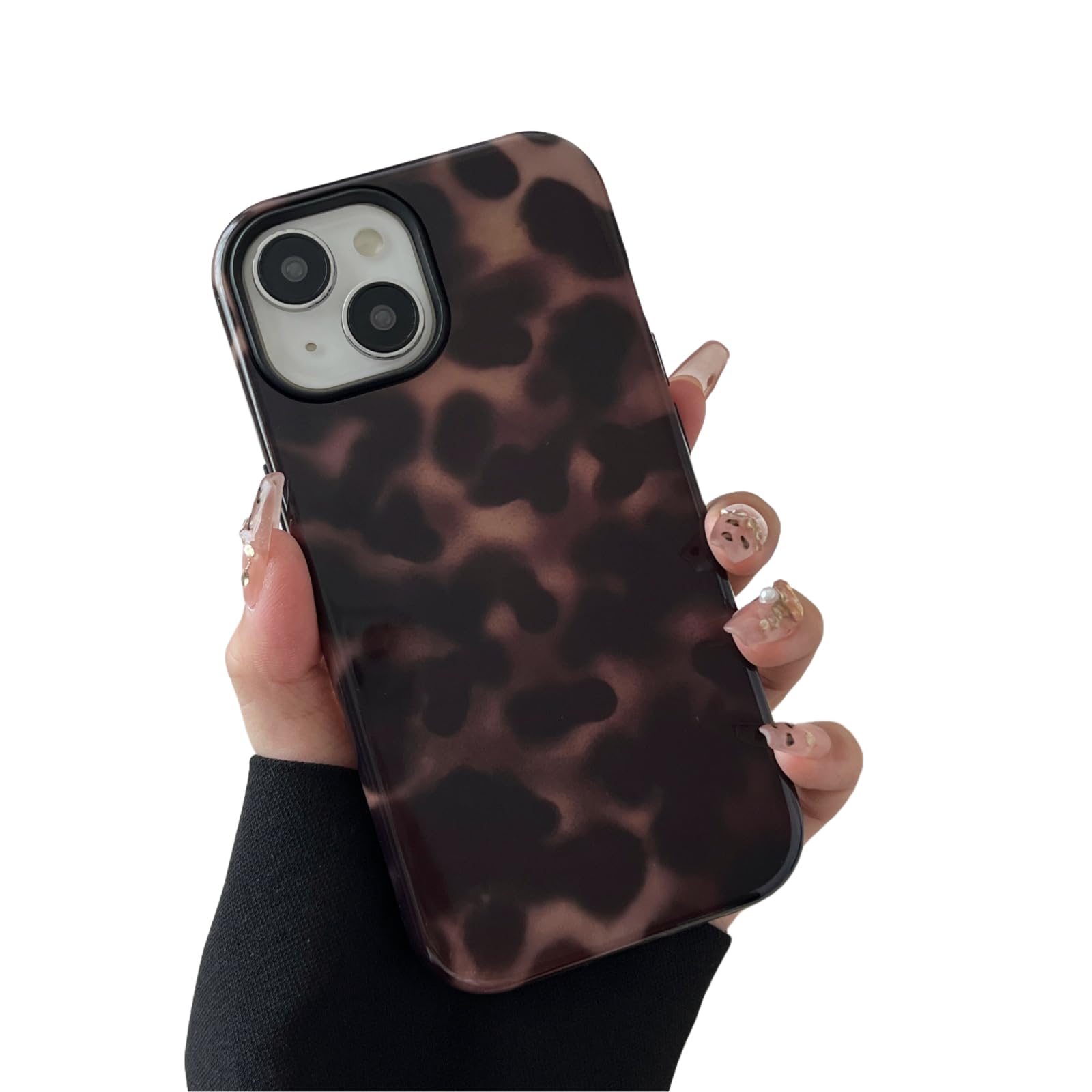 Compatible with iPhone 17 Case Tortoise Shell Phone Case for Women Girl Shockproof TPU and Hard PC Protective Cover - Amber Brown Leopard