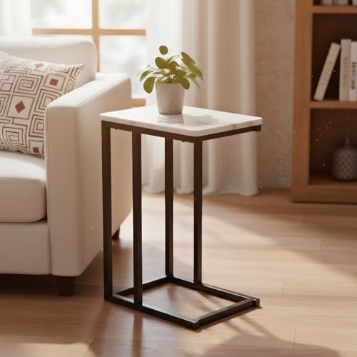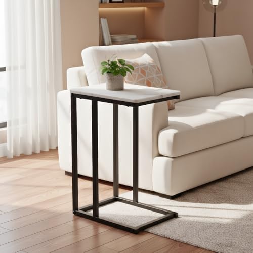 - VERSATILE DESIGN: C-shaped side table perfectly slides under sofa or bed, ideal for laptops, drinks, or snacks with its 15.75" x 11.81" surface area