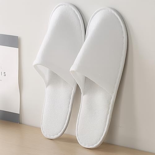 24 Pairs Disposable Slippers for Guests – Soft Fleece Surface, Individually Wrapped Bulk Spa Slippers for Hotel, Travel, Beauty Salon, Home Use(White)