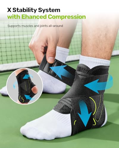 - Adjustable Strap for Targeted Compression: The strap delivers a secure 360° ankle wrap to stabilize the joint and muscles. Adjust for the right level of compression to help relieve swelling, improve circulation, and supports recovery. Ideal ankle stabilizer brace for women men for running, basketball, soccer, volleyball, tennis, hiking, and more.