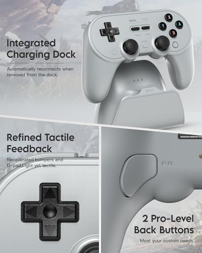 - 【𝐔niversal 𝐌ulti-𝐏latform 𝐂ompatibility】: 8BitDo Pro 3 seamlessly connects across Switch 1 & 2, Windows PC, Apple devices, SteamOS, and Android platforms. Experience effortless gaming transitions between your favorite devices with instant wireless connectivity and automatic profile switching for optimal performance on each platform.