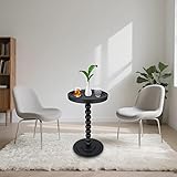 Simcat Solid Wood Small Round Side Table, Drink Table with Stable Legs, Coffee Martini Table with Pedestal for Small Spaces (Black)