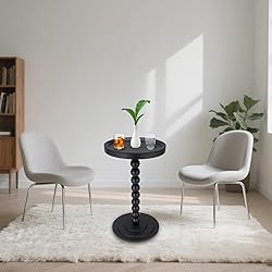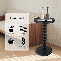 【Design Details】Crafted with attention to detail, this side table features a walnut-grain finish and striking color that adds a touch of elegance.Its rounded top enhances safety, while the wooden ball connectors at the base contribute an aesthetic flair. Suited for minimalist decor, it elevates your room's atmosphere effortlessly 【Small Dimensions for Small Place】 Measures 13.7''L x 13.7''W x 18.89''H. It is ingeniously designed and compact in size. It is suitable for multiple scenarios such as living rooms, bedrooms, studies, corridors, corners, and compact Spaces. Meet most of your usage needs, enhance your quality of life and offer you assistance 【Sturdy Structure】This round side table is made of high-density medium-density fiberboard and coated with a waterproof layer. The special design of the base makes the center of gravity of the table lower, more stable, prevents shaking, and also makes the table as a whole look more stylish 【Multiple Functions】Ideal as a side table next to the sofa, a couch end table, a nightstand beside the bed, a small drink table outdoors, or even a plant stand, this versatile side table serves multiple purposes and meets various needs in your home 【Customer Service】This small round table is easy to assemble without any tools, you can finish it in 3 minutes.Any questions or problems, please tell us. We would offer the best solution for you at the first time