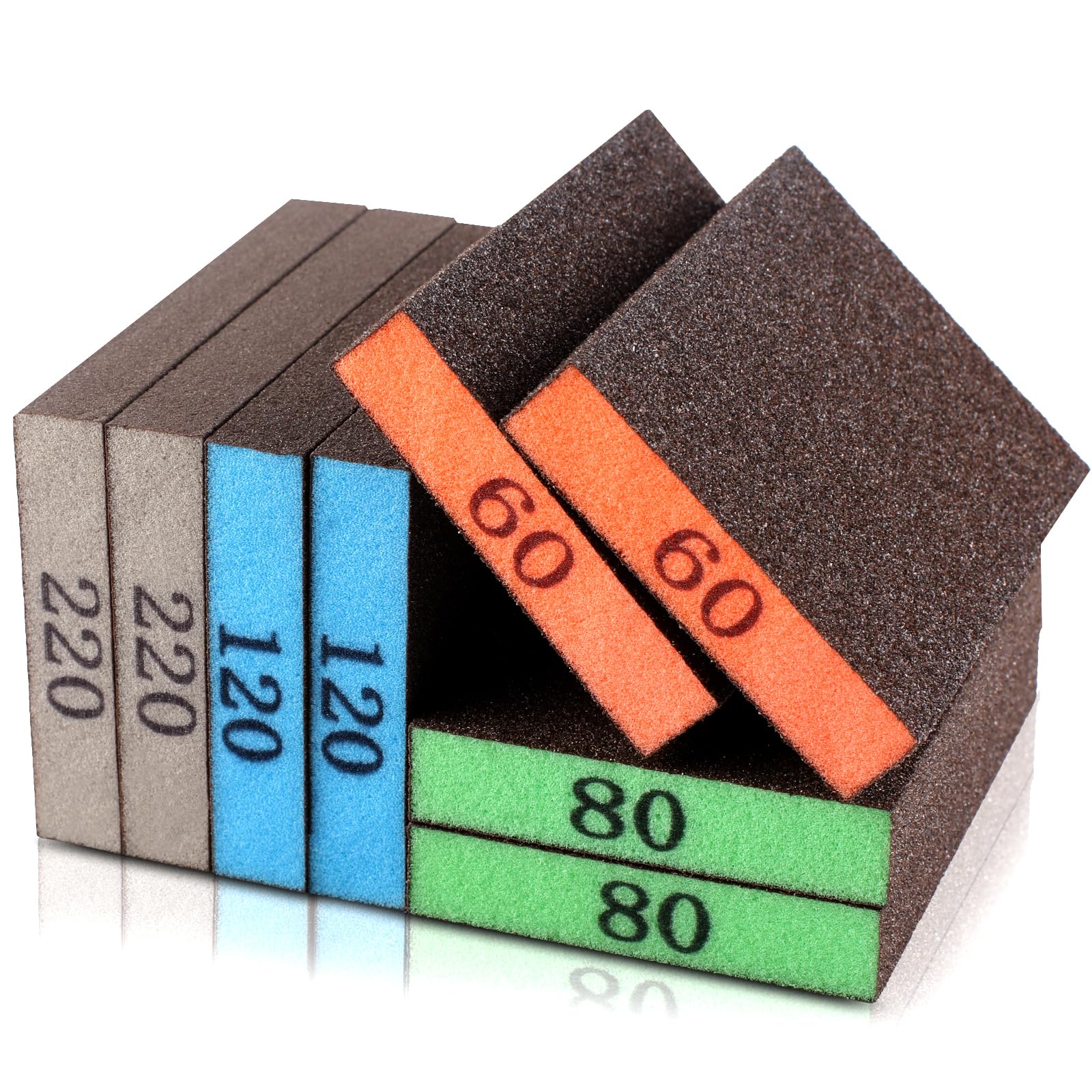 8 Pack Sanding Sponge, Washable & Reusable Sanding Blocks for Drywall, Wood, Metal & Furniture — Premium Sandpaper Block Assortment with 60/80/120/220 Grit