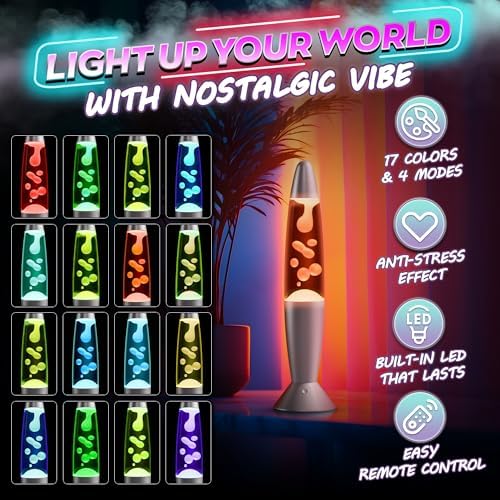 - Vibrant 17 Color Liquid Motion Lamps: Set your room ambiance with our led color changing lamp. 17 bright LED colors and 4 lighting effects (Fade, Flash, Smooth, Strobe) for any mood or activity