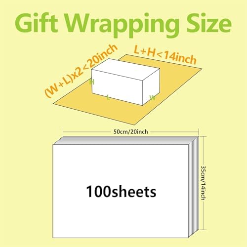 - Each tissue paper is W 14" x H 20", not only can be used to packaging gifts of different sizes, but also can be cut into the proper size you need.
