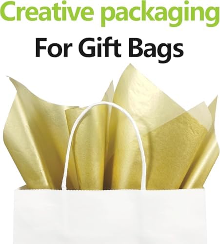 Bobobag 200 Pack 14"X20" Metallic Gift Wrapping Gold Tissue Paper Bulk for Christmas, Mother's Day, Small Business,Birthday Gift Bags Packaging Craft