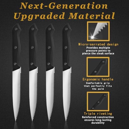 Steak Knives Set, Premium Stainless Steel Steak Knives Set of 4, Lightweight & Durable Steak Knife, Professional Kitchen Knife Dishwasher Safe