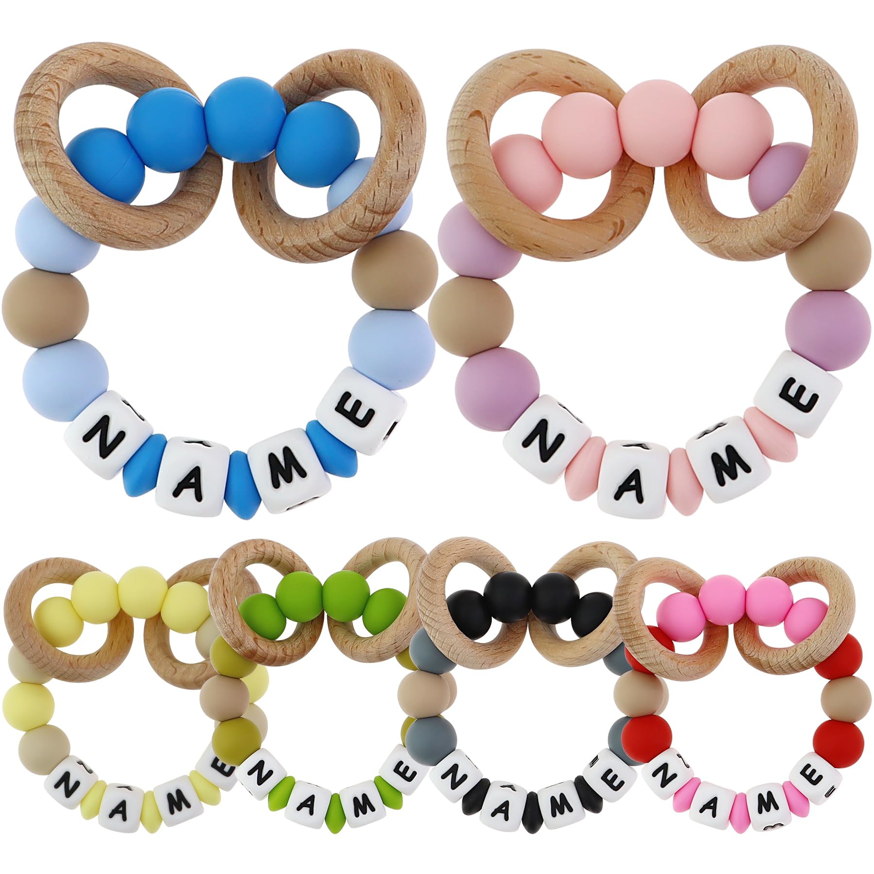 - Personalized & Customizable Name Teether:Create a unique teething bracelet for baby effect with their very own name! Our custom silicone bracelets-inspired ring is more than a toy; it's a cherished baby name bracelet they can hold. Perfect as a personalized teether for baby boy toys or baby girl teether collections. Simply click "Customize Now" to add any name in fun, uppercase letters