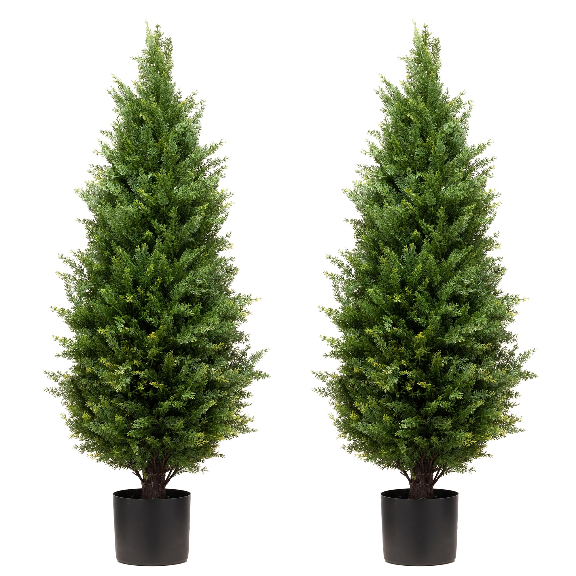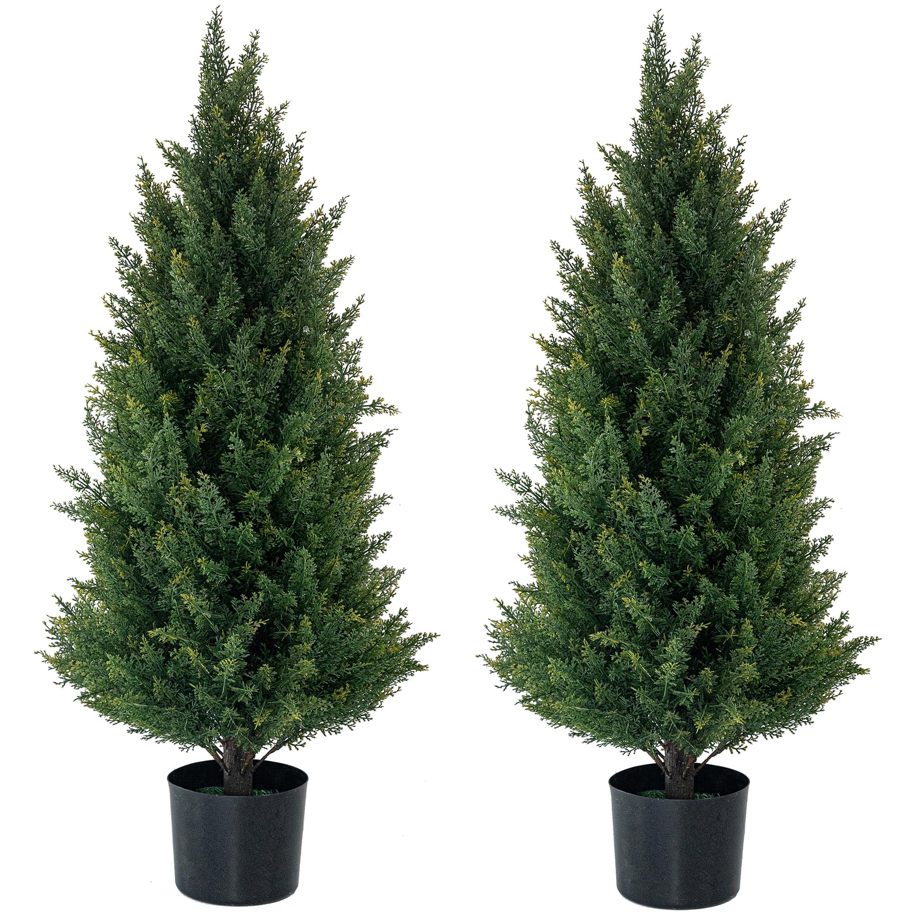 3FT Artificial Cedar Topiary Trees with Ground Spike, Set of 2 Faux Cypress Plants UV Resistant Artificial Pine Shrubs Fake Bushes for Outdoor Indoor Front Porch Garden