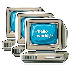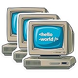 (3 Pack) Hello World Coding Decals - Retro Computer - Programmer Laptop Stickers - 3 Inches On Longest Side - Easy Peel & Apply - Made in USA - 3MCS6184