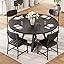 5 Piece Round Dining Table Set for 4, Kitchen Table and Chairs for 4, Space Saving Wood Circle Table Round Pedestal Dining Room Dinner Dinette Table Set Furniture (Black, 47 * 47 * 30)
