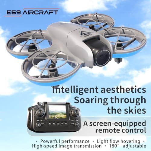 Drone With HD Dual Cameras Propeller Safety Protection, Remote Control Mini Drones, Headless Mode, One-Key Takeoff/Landing Rolling Hovering E69 Quadcopter with 3 Batteries for Adult Beginners
