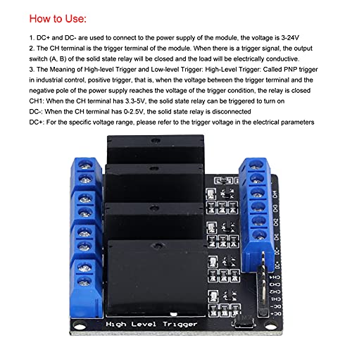4 Channel Solid State Relay Module SSR DC Control AC 4CH High Level with 3-24V Fast Switching Low EMI