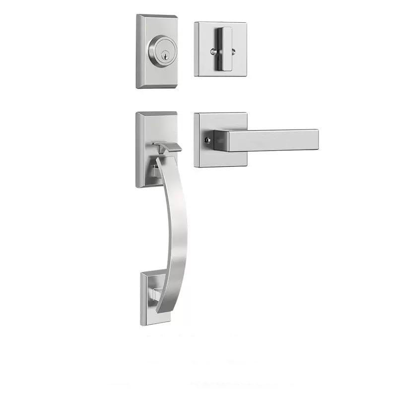 - The ergonomic handle offers a comfortable grip, and the smooth operation of the lock mechanism enhances user experience. Exterior door lock set comes with a single cylinder deadbolt that can be opened by an exterior key,which provides dependable, security for your home.