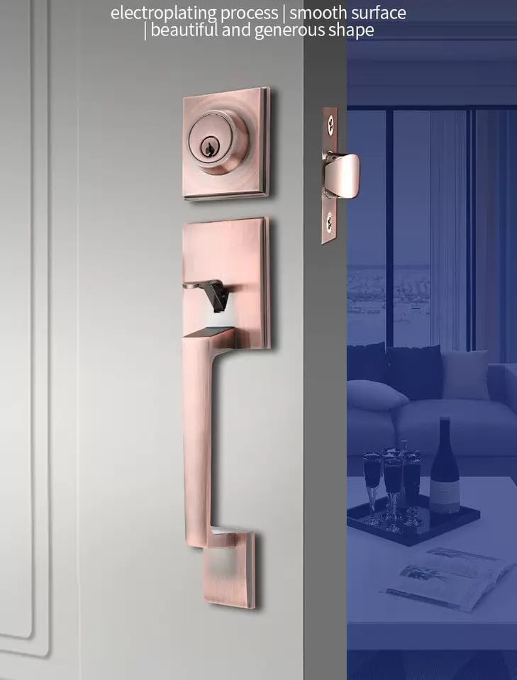 - The copper finish exudes a modern elegance, adding a touch of sophistication to your front door. The sturdy construction ensures durability and longevity, providing reliable protection for your home.
