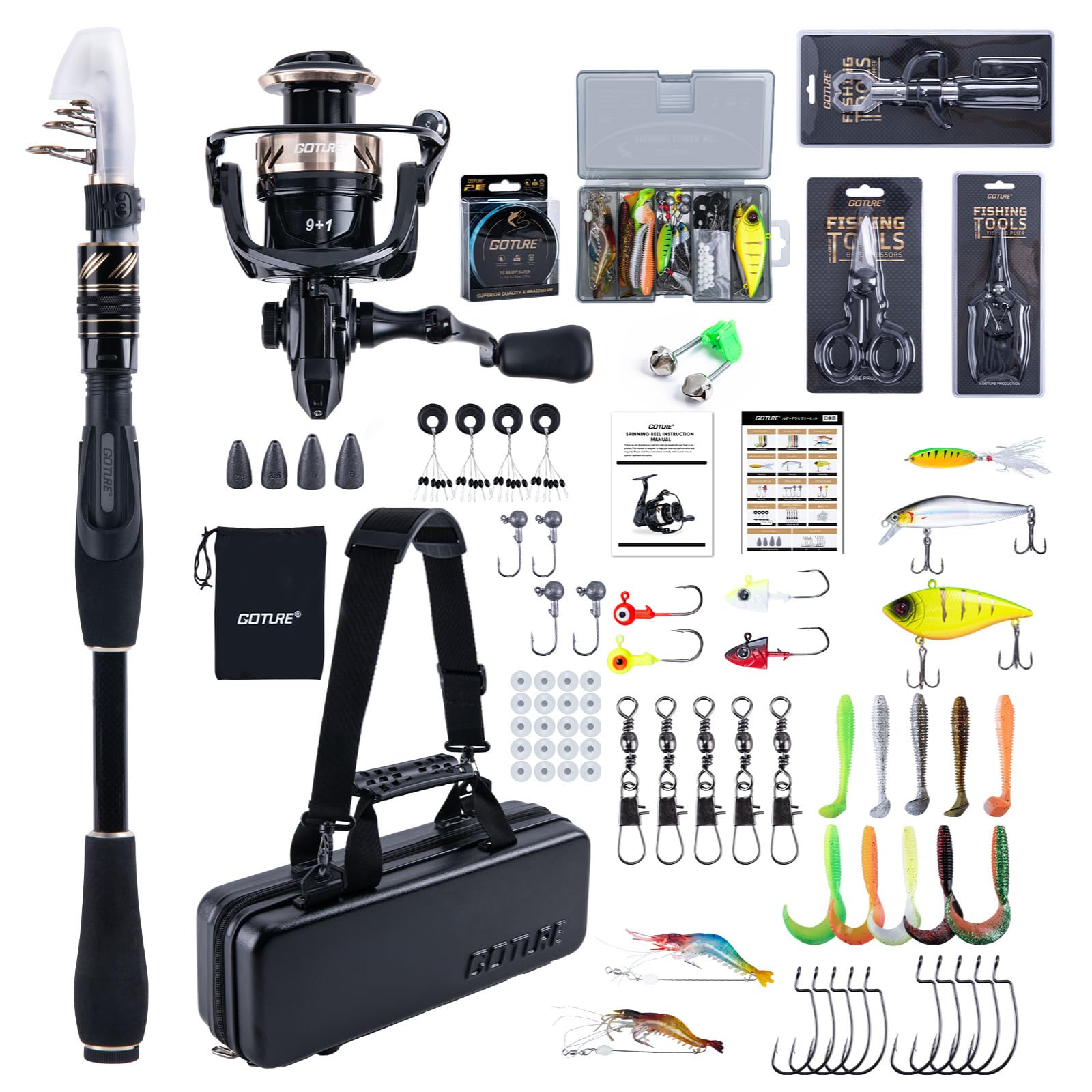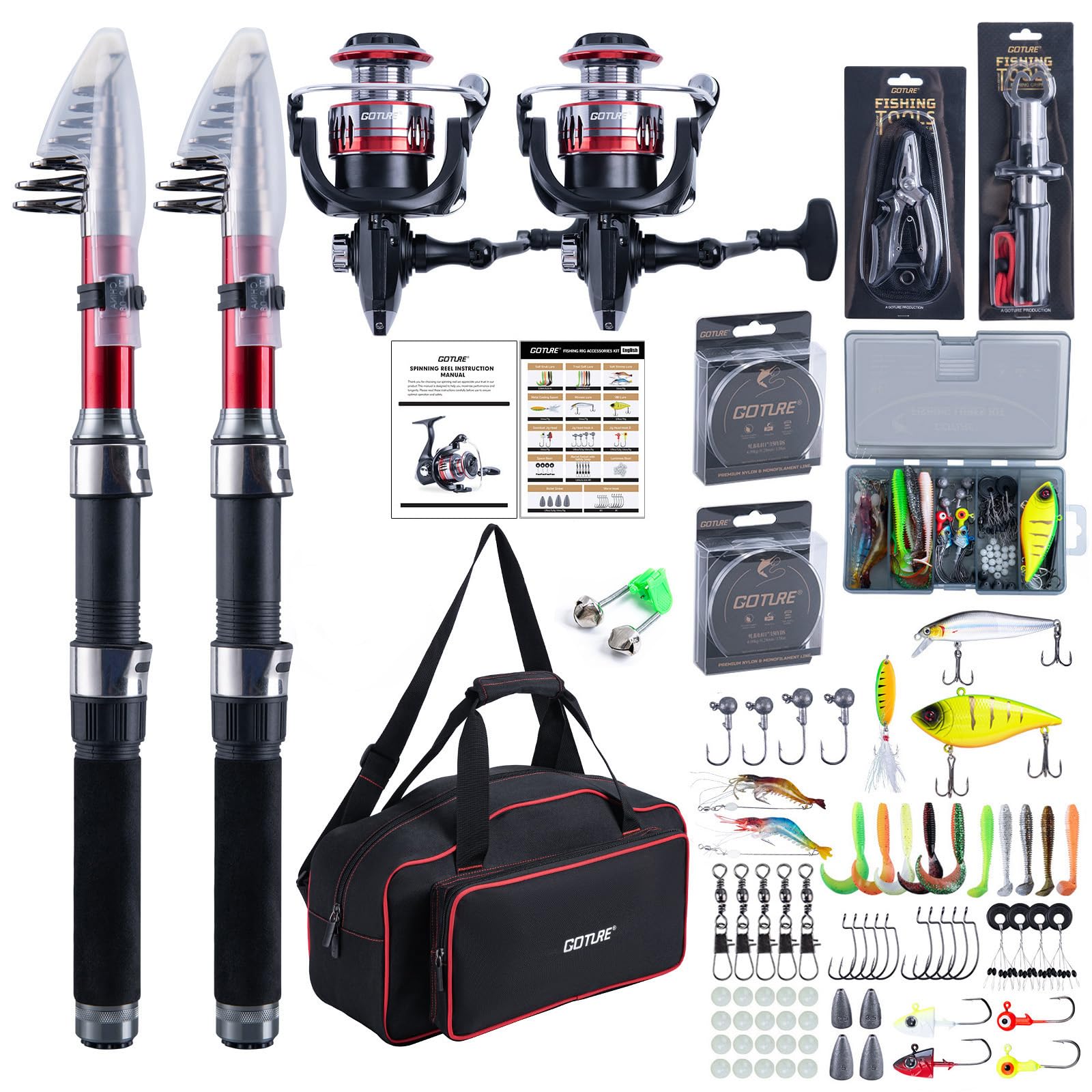 Goture Fishing Rod and Reel Combos-Telescopic Fishing Pole Spinning Reel with Carrier Bag, Telescopic Rod Reel Kit for Travel Saltwater Freshwater Gear Gifts for Men