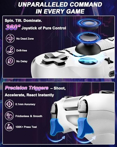 Quevati Wireless Controller for PS-4, Dual Vibration Game Joystick/Motion Sensing/Touchpad/Speaker/3.5mm Audio Jack Headphone, Upgraded Six-Axis Sensor, Compatible with PS4/Slim/Pro Console/PC (white)